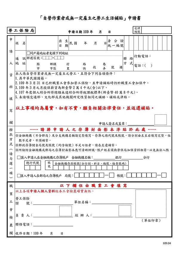 Fosknyg6db5fpm from i2.zi.org.tw 對於這些資本額不高的自營商,政府祭出補助條件,以 2018 年沒有達到課稅標準、有在職業工會投保、投保薪資 2.4 萬元以下為優先選項,每月發給 1 萬元、補助三個月,一次性發 3 萬元紓困補助,並以餐飲、零售、運輸倉儲、藝術娛樂等四類弱勢自營工作者為. 勞動部表示,自營作業者和無一定雇主勞工生活補貼發放,2020 年提供自營工作紓困補貼 3 萬元,需符合兩項資格,包含收入低於基本工資 2.4 萬元,以及 107 年所得未達課稅標準者才能申請。在這次的紓困4.0個人補助中. Tagged with 部落客, youtube, 試算, 勞工, 網紅, 小企業, 微型創業, 申請教學, 範例, 自營勞工, 紓困金, 自營作業者補助, 非受雇勞工, 接案工作者, 小老闆, 小吃攤老闆, soho族, 水電工, 計程車司機, 小商店老闆, 自營作業者, 補助方案, 勞工紓困補助, 勞工補助, 補貼, 補貼.