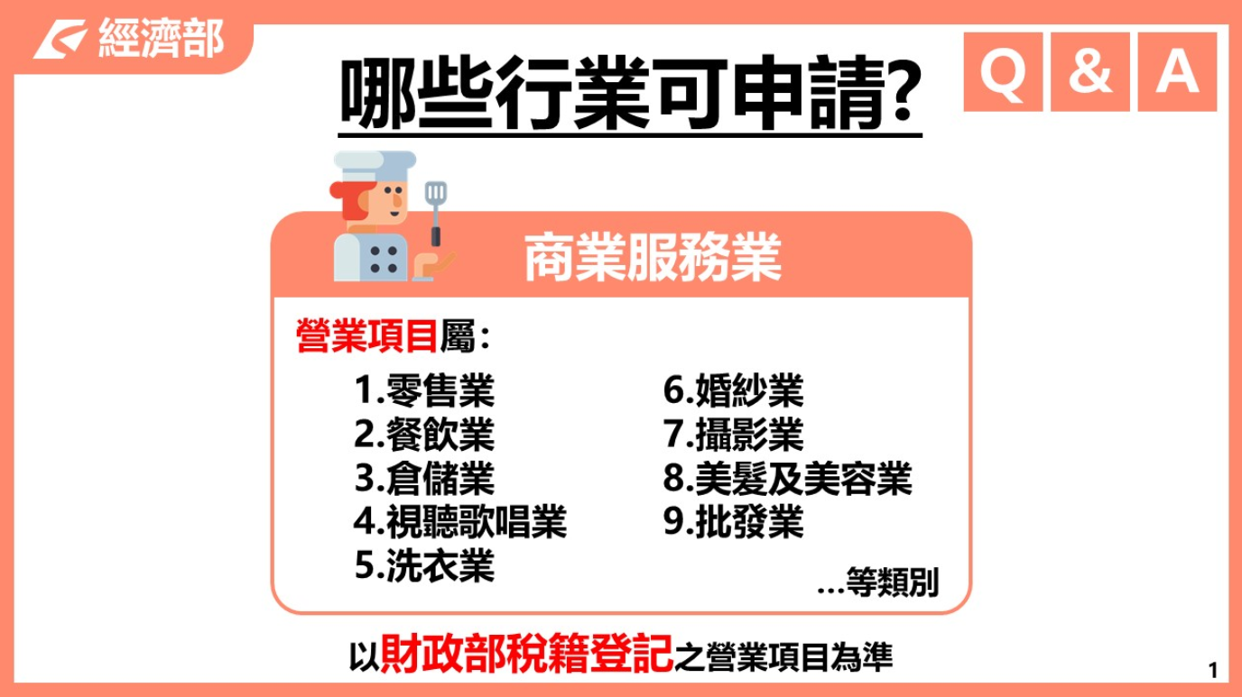 對於這些資本額不高的自營商,政府祭出補助條件,以 2018 年沒有達到課稅標準、有在職業工會投保、投保薪資 2.4 萬元以下為優先選項,每月發給 1 萬元、補助三個月,一次性發 3 萬元紓困補助,並以餐飲、零售、運輸倉儲、藝術娛樂等四類弱勢自營工作者為.